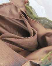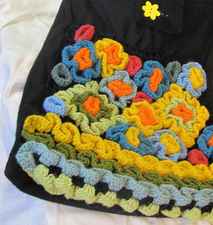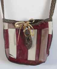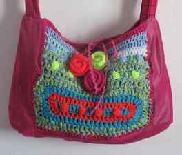 For my bags, I use several different materials: beautiful fabrics, leather, colorful wool, threads, buttons, ribbons and more. I use many techniques to create my bags: sewing, quilting, crochet, knitting, embroidery and more. All bags are lined from the inside, and have a pocket for cellphone and keys.